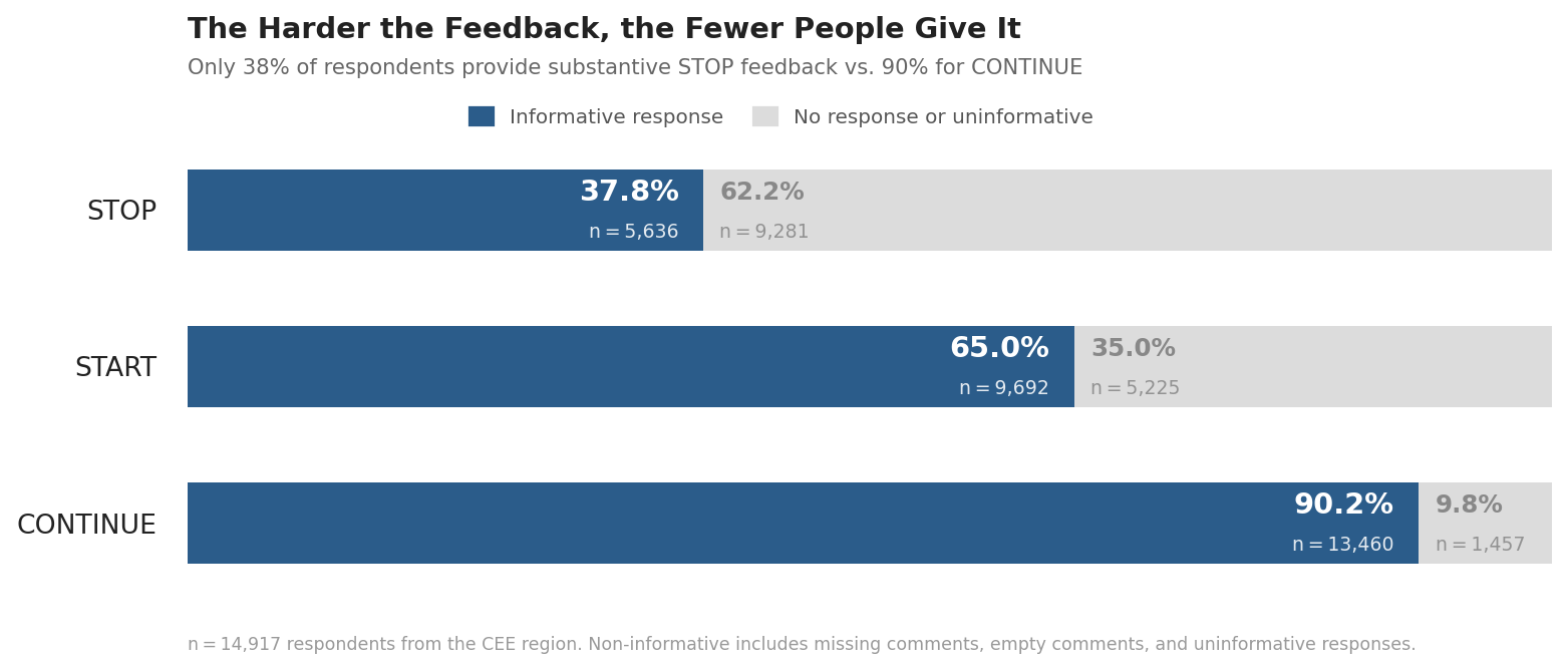 It is quite common to encounter the opinion that responses in exit surveys or interviews are more honest than those in regular engagement surveys, despite their anonymity and/or confidentiality, especially when it comes to more politically sensitive topics such as satisfaction with one's direct manager. It is usually argued that people no longer fear repercussions or negative consequences for speaking openly about their real experiences and opinions because they leave the organization and have less incentive to conceal critical feedback. Let's see if we can find any evidence of it in the data...